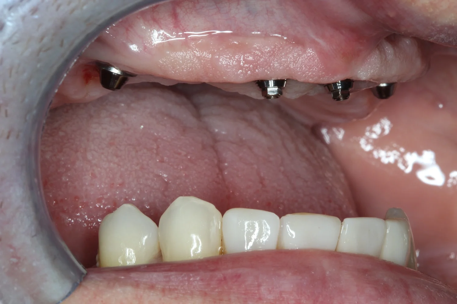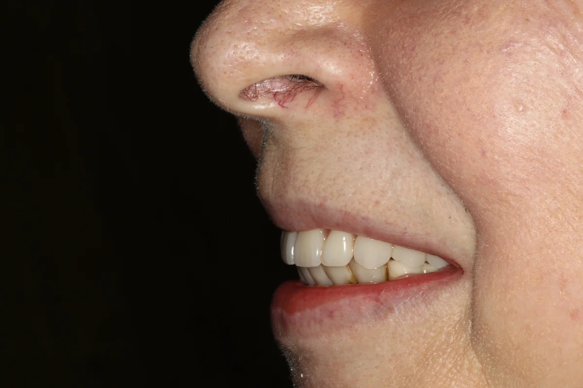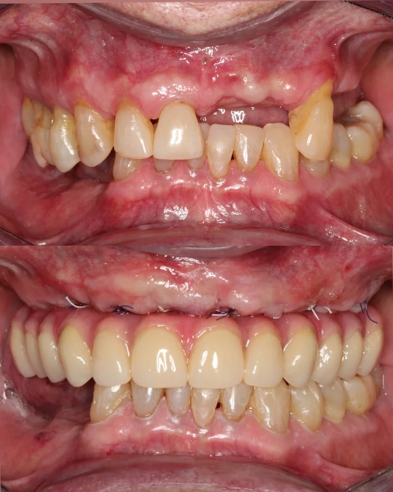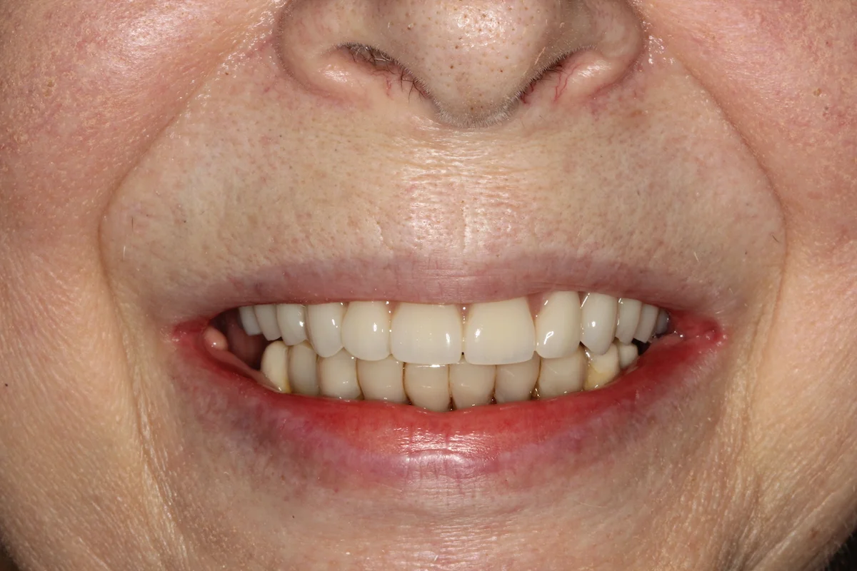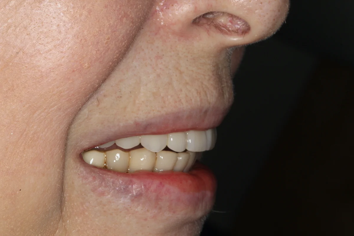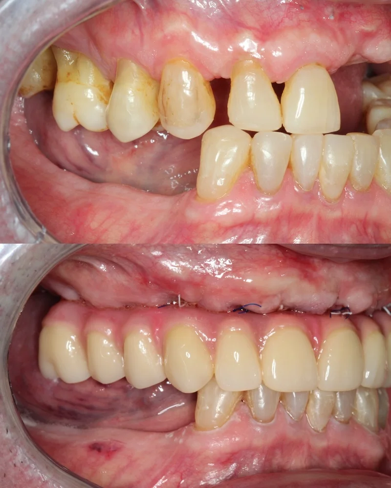 Dzięki przeszczepowi z podniebienia dziąsło wokół zęba jest pełne i wysoko zachodzi na implant. Wygląda to bardzo naturalnie. Jeśli kiedyś będę potrzebowała zabiegu z zakresu chirurgii stomatologicznej lub implantologii, zgłoszę się do doktora Balczyńskiego. Wiem, że zrobi co w jego mocy, żeby nieprzyjemne, ze swej istoty, zabiegi przebiegły gładko, a efekt był naturalny i trwały.