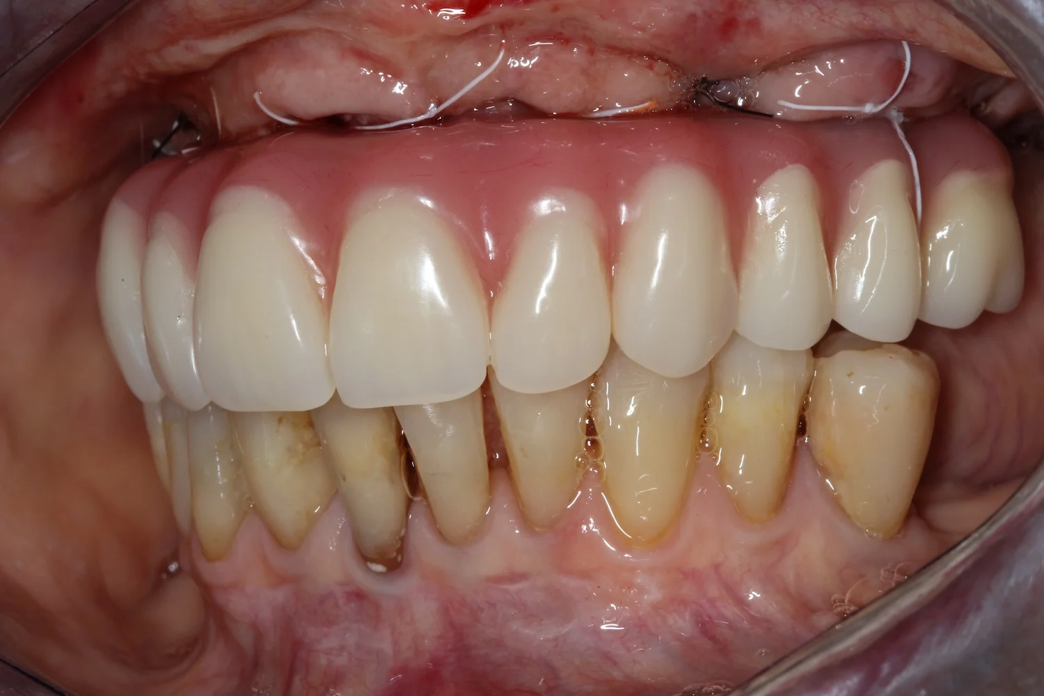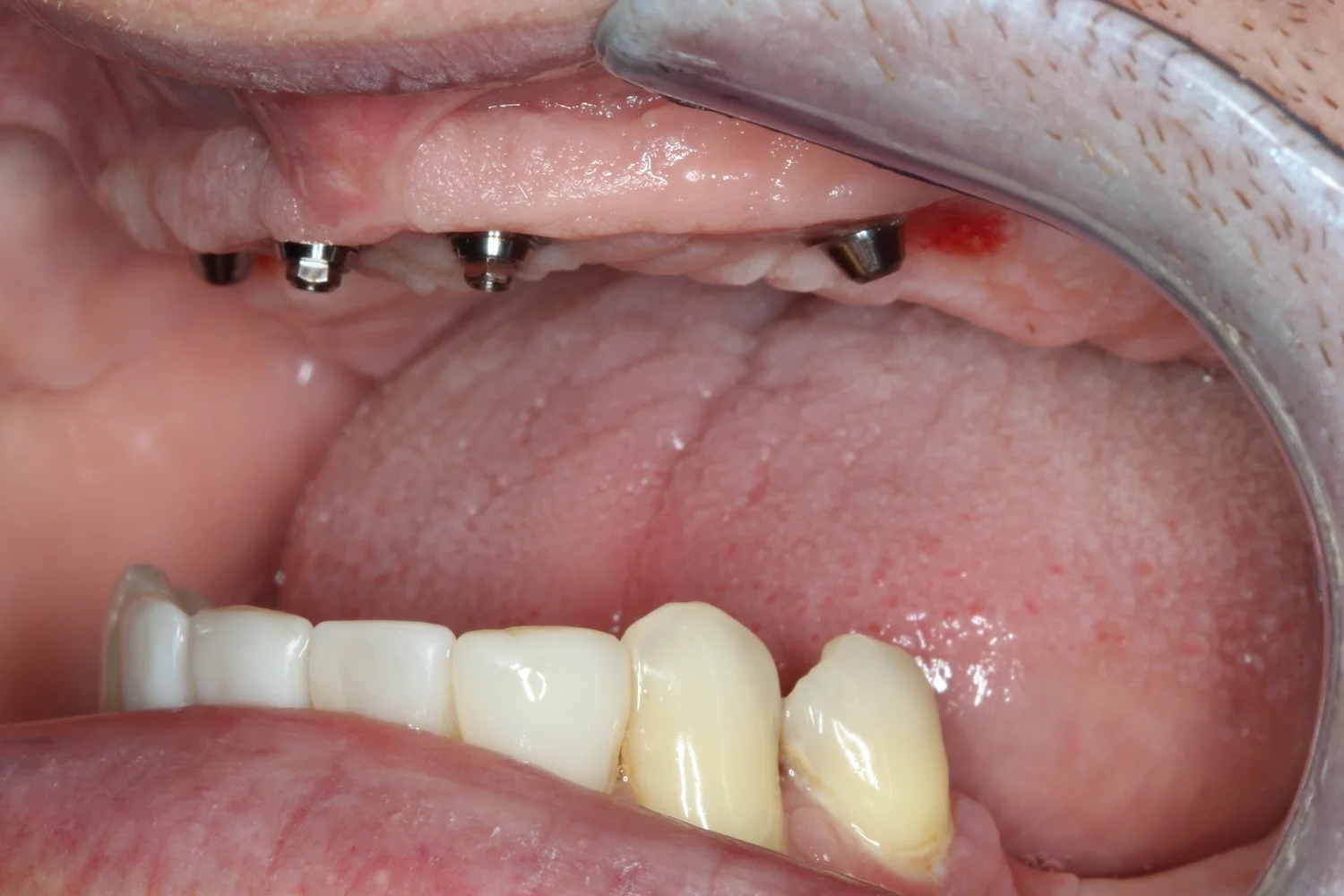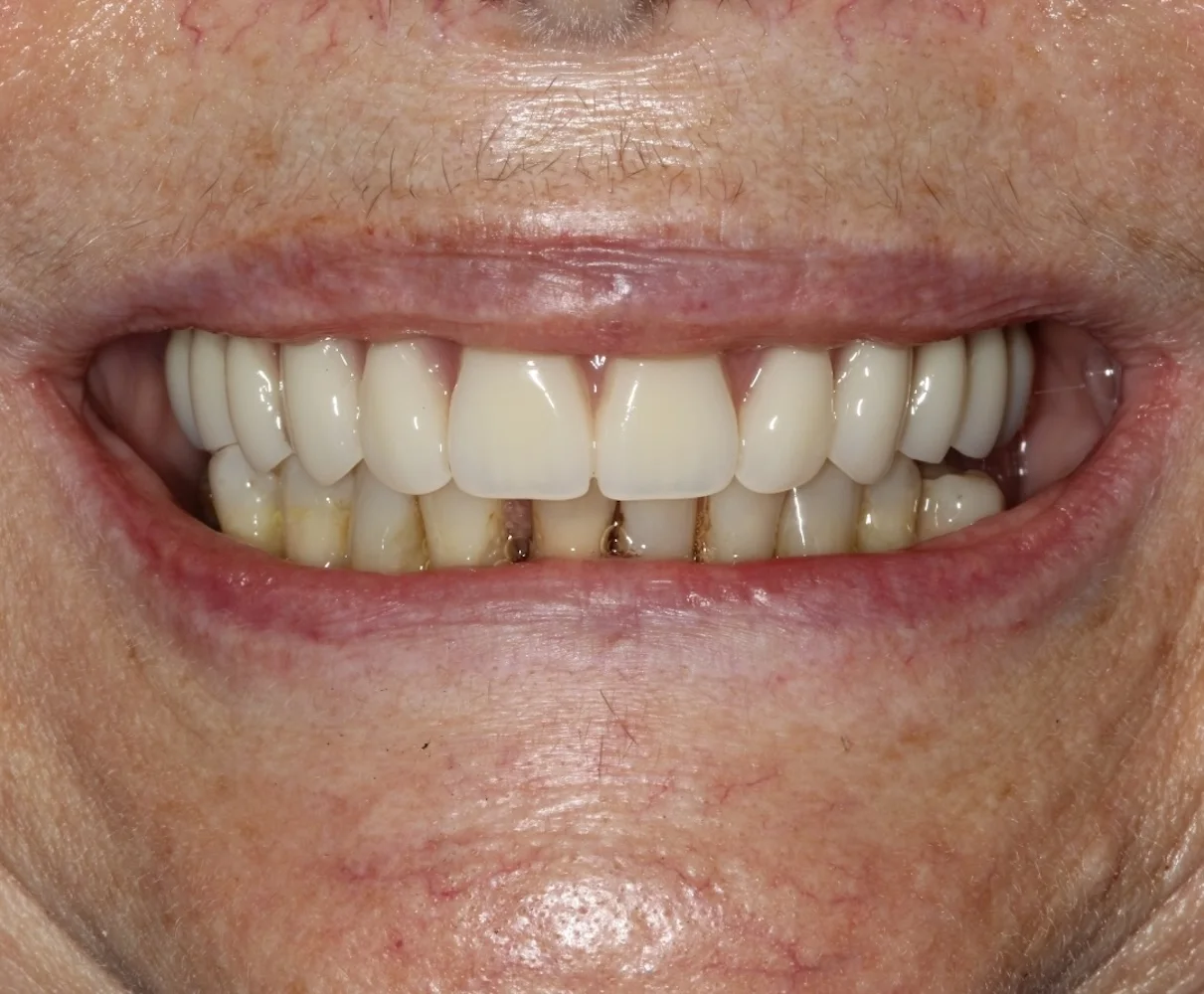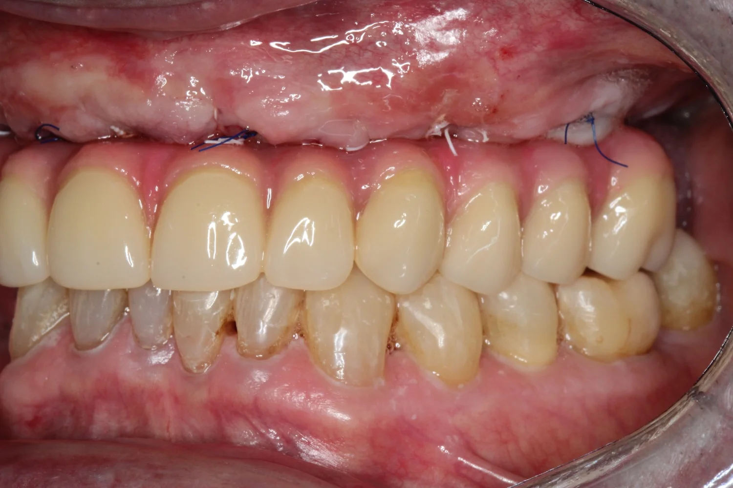 Dzięki przeszczepowi z podniebienia dziąsło wokół zęba jest pełne i wysoko zachodzi na implant. Wygląda to bardzo naturalnie. Jeśli kiedyś będę potrzebowała zabiegu z zakresu chirurgii stomatologicznej lub implantologii, zgłoszę się do doktora Balczyńskiego. Wiem, że zrobi co w jego mocy, żeby nieprzyjemne, ze swej istoty, zabiegi przebiegły gładko, a efekt był naturalny i trwały.